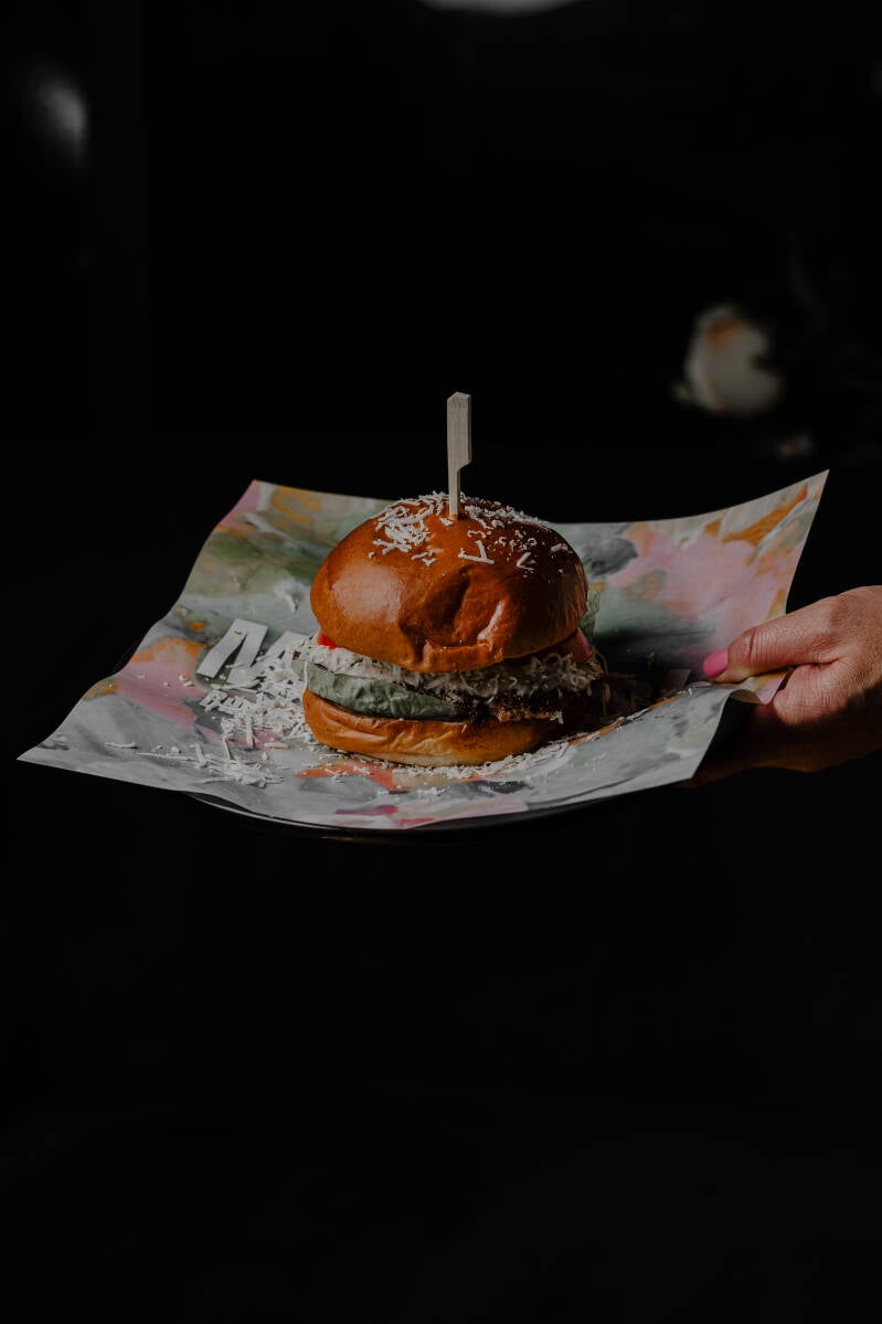 100% rundergehakt, parmezaanse kaas, sla, tomaat & truffel mayonaise